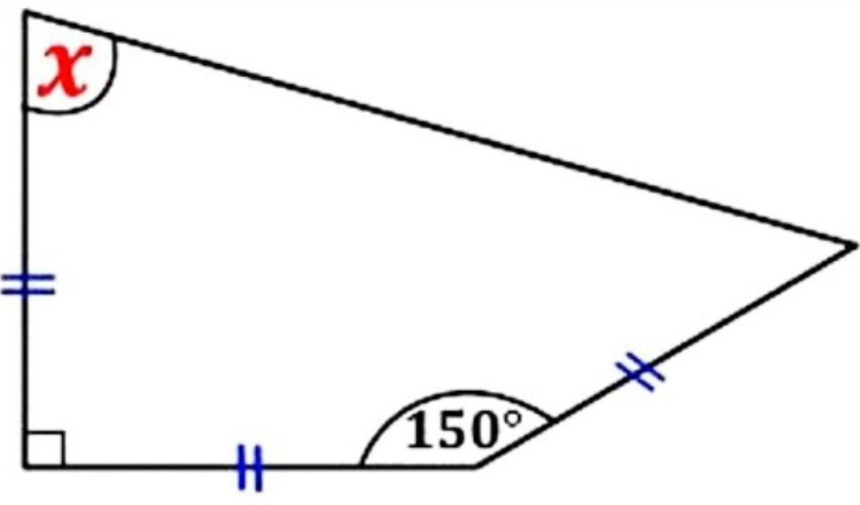 Let the polygon be ABCD, with \angle A = 90^\circ, \angle B = 150^\circ, and \angle D = x.