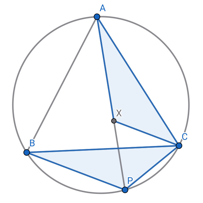 AC = BC, \ \angle BCP = \angle ACX, \ PC = XC,